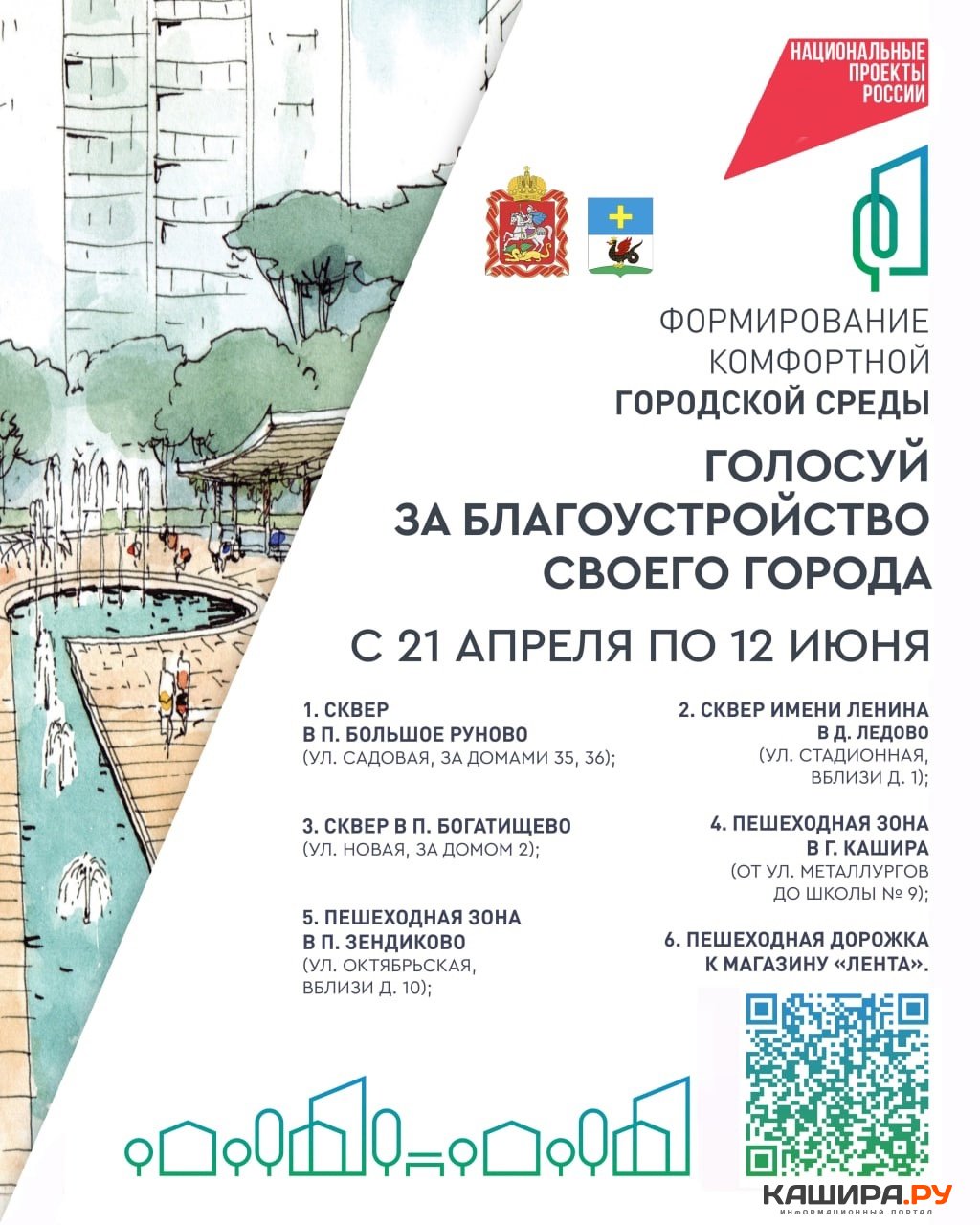 Каширяне могут принять участие в голосовании по благоустройству территорий🇷🇺Всероссийское онлайн-голосование по отбору общественных территорий для благоустройства в рамках федерального проекта «Формирование комфортной городской среды» и национального проекта «Инфраструктура для жизни» 2025 при поддержке Министерства строительства России стартовало 21 апреля. Участники выберут дизайн-проекты, реализация которых планируется в Кашире. В 2025 году в голосовании примут участие 6 каширских общественных территорий.