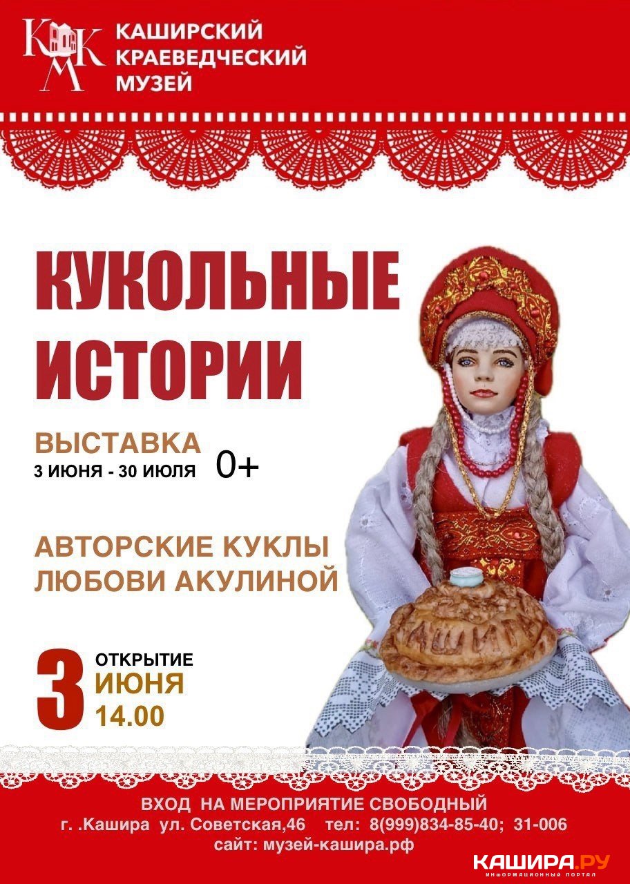 В Каширском краеведческом музее для ребят открывается уже вторая тематическая выставка. Своих авторских кукол представит каширянка Любовь Акулина.Любовь - мастер интерьерных кукол. В ее мастерской на свет появляются известные герои советских фильмов, персоны с картин и фотографий, ретро-фигурки.