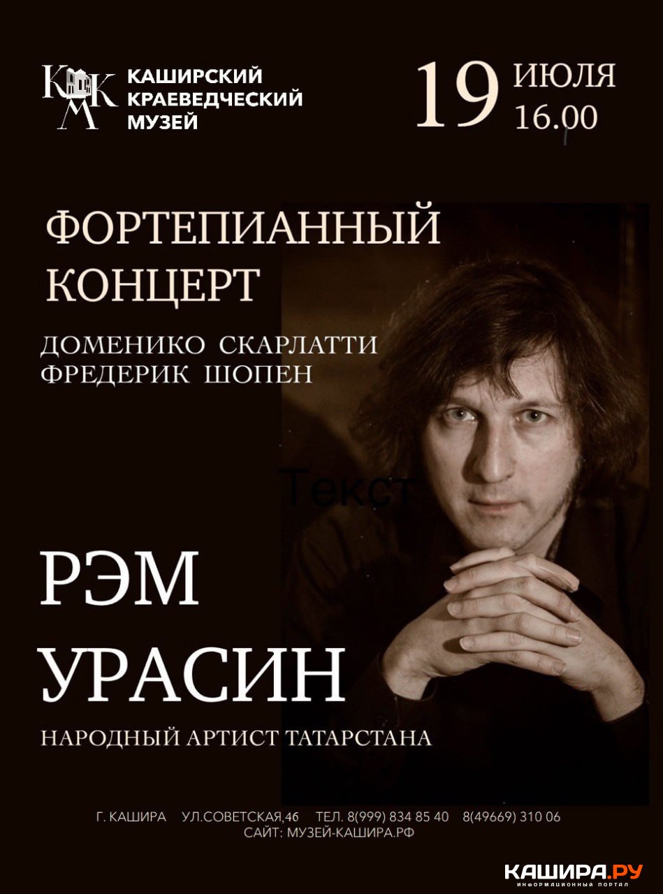 Всемирно известный пианист, народный артист Республики Татарстан Рэм Урасин дал концерт в Кашире 19 июля 🎹