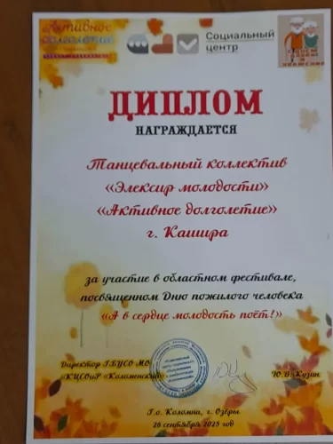 Танцевальный коллектив "Эликсир молодости" принял участие в областном фестивале. Участницы коллектива успешно выступили, вызвав положительный эмоциональный отклик у зрителей.