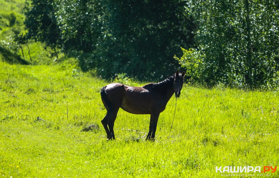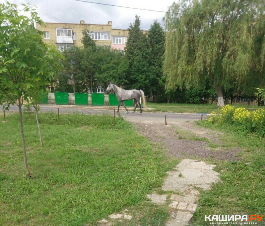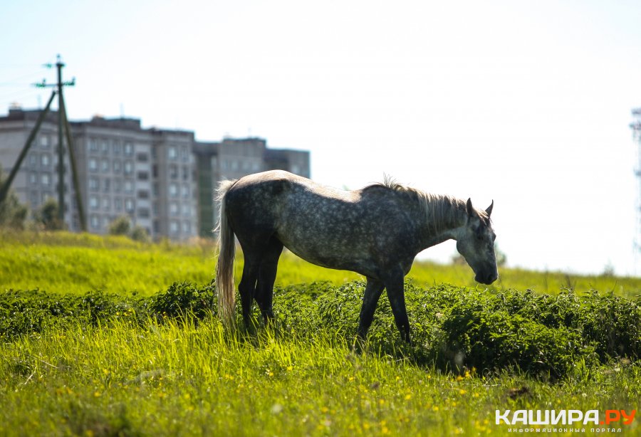 Уже не первый день каширяне замечают находящихся на свободном выпасе лошадей коричневого и мраморного окраса. Животные гуляют без привязи в районе оврага между Каширой-3 и ул. Полевой.