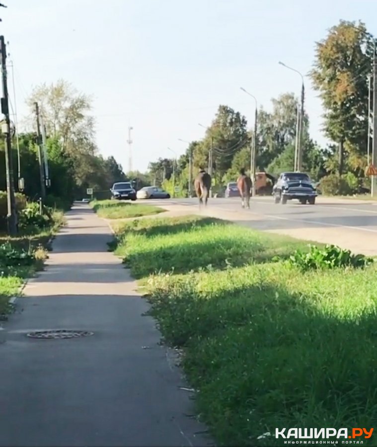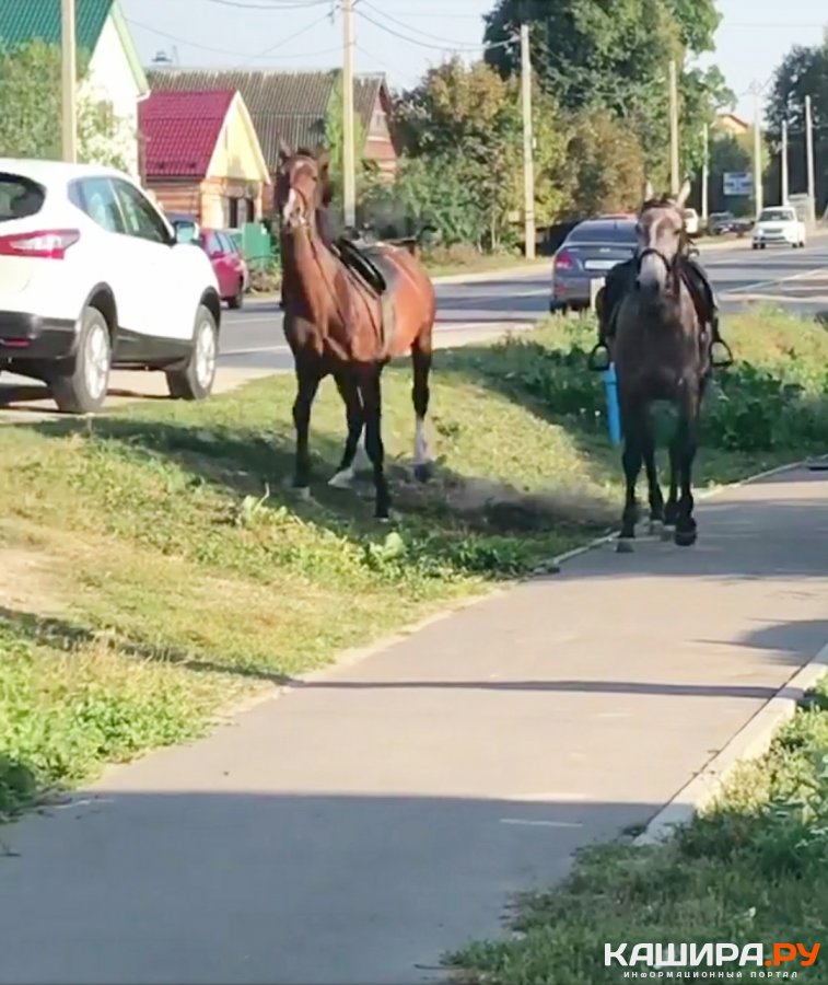 На видео одного из пользователей Инстаграма попали две лошади, которые вольно, но в довольно спешном порядке передвигались по тротуару вдоль проезжей части Кашире. В какой-то момент животные решили сойти с узкой «тропы» в частном секторе и резко рванули на автодорогу. Только чудом одна из лошадей, бежавшая впереди, не угодила под колеса автомобиля. Благодаря своевременной реакции водителя, ему удалось резко объехать лошадь слева и избежать столкновения с массивным животным. Судя по видео, обе лошади были запряжены и оседланы, а стало быть, животные не были бесхозными. Позднее этот факт подтвердил и сам автор видео: «Ураааа, хозяева нашли своих лошадок», – написал он под видео.
