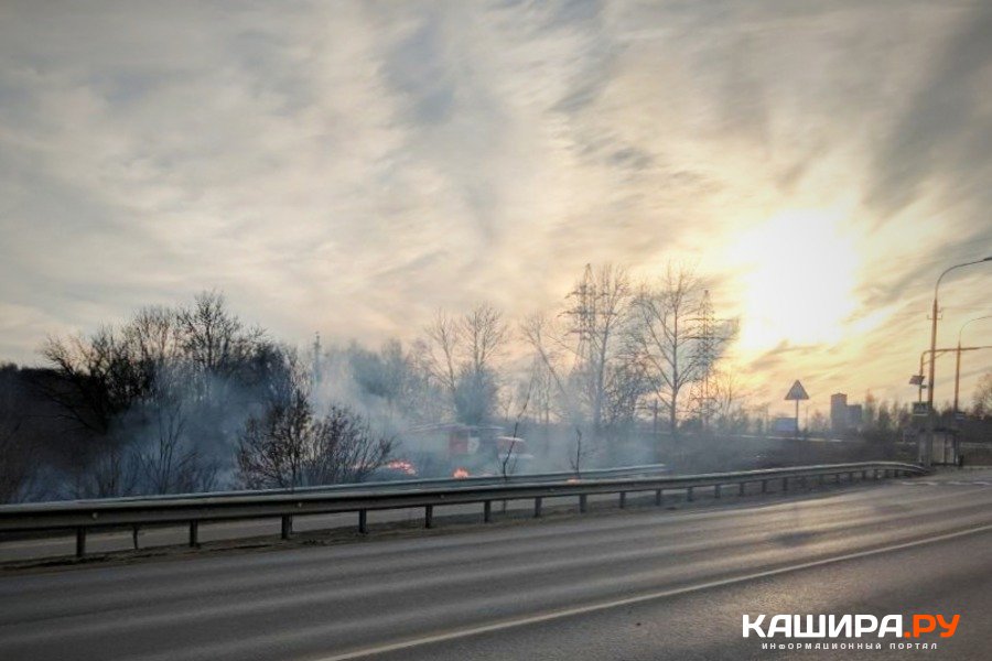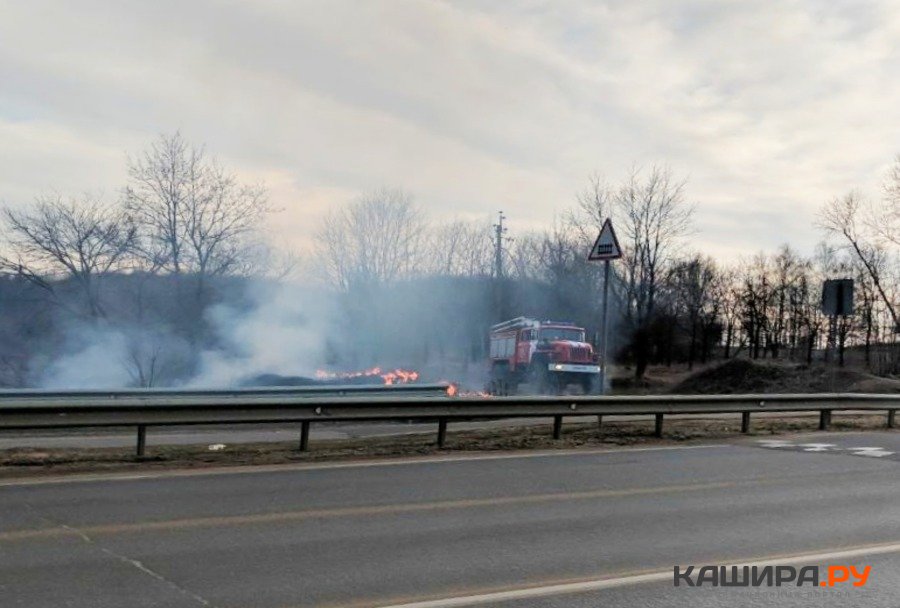 Сухая трава начала гореть в Кашире