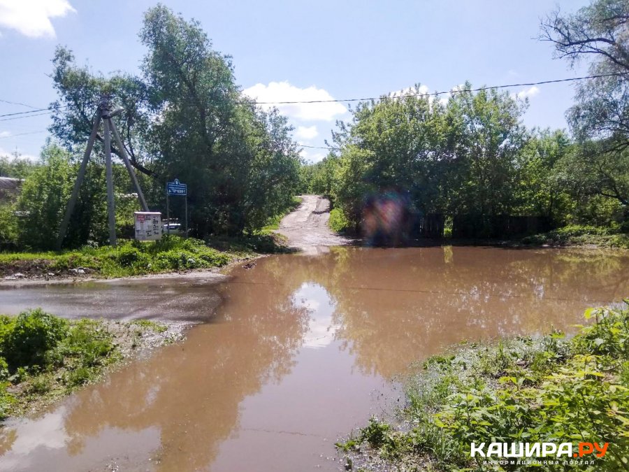 В деревне Терново-1, которая находится практически в черте Каширы-2, местные жители показали снимки огромной лужи, образовавшейся после прошедших недавно дождей.