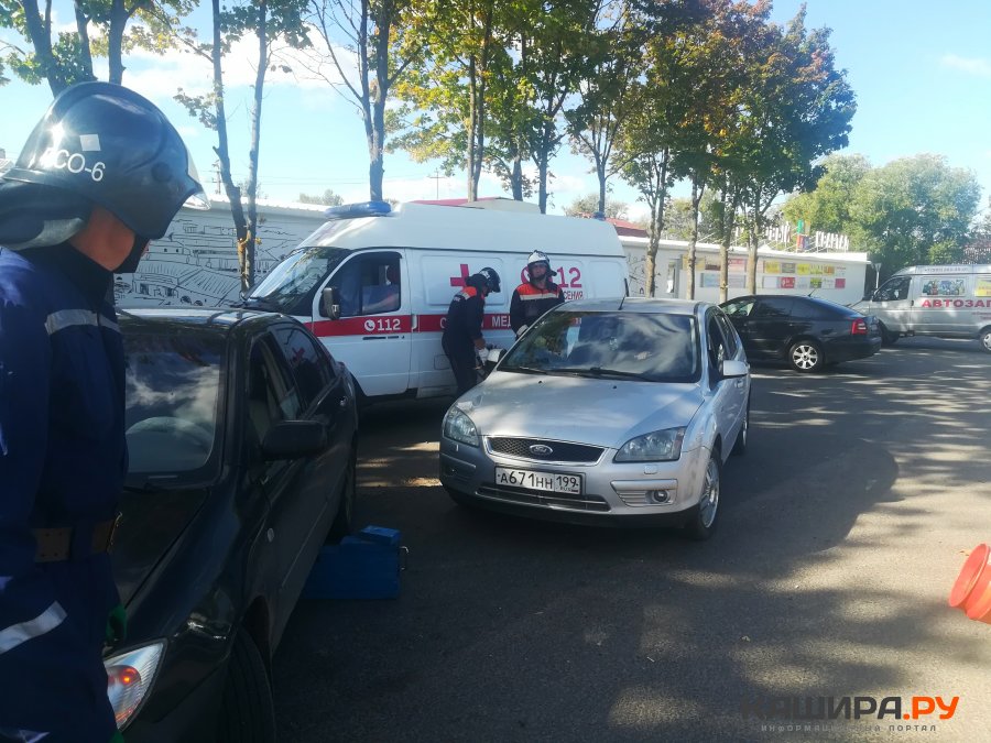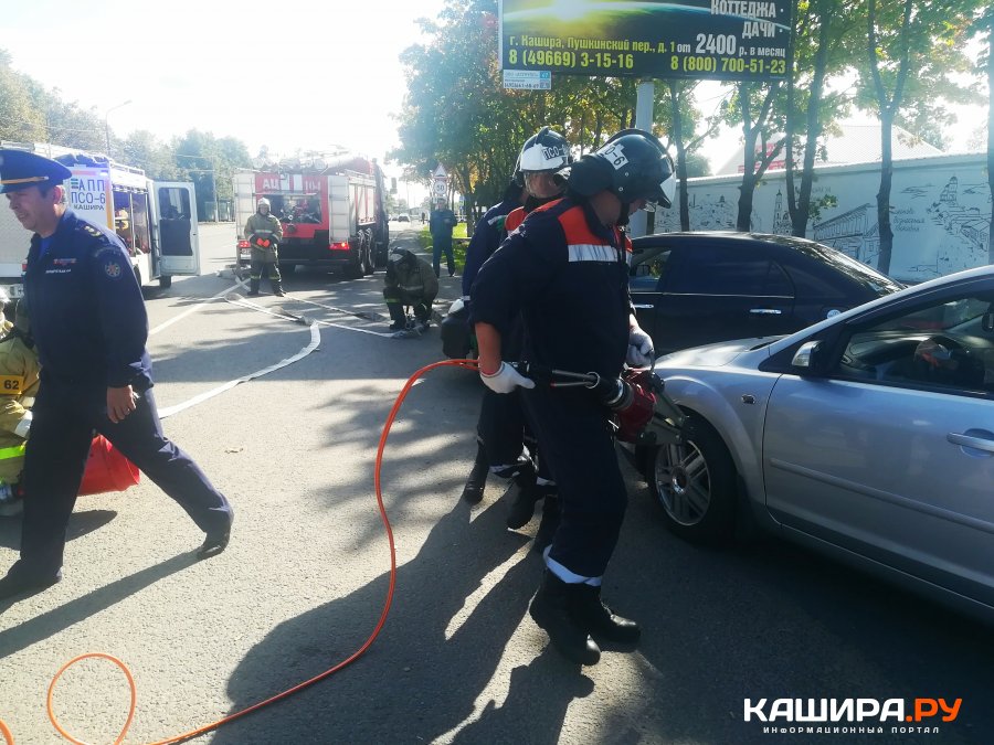 Каширские спасатели деблокировали водителя после «столкновения» двух легковых автомобилей