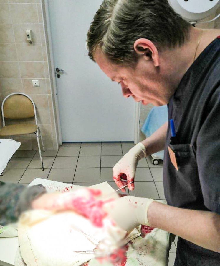 «В приемном отделении выполнили первичную хирургическую обработку раны, остановили кровотечение из сосудов. Была большая кровопотеря, рана – очень обширная. И мужчину госпитализировали к нам в «травму». В отделении проводилась интенсивная сосудистая и антибактериальная терапия. В «травме» нашей больницы с такими ранами уже работали. Опасность их в том, что мягкие ткани могли не прижиться»,– рассказал заведующий отделением травматологии больницы Денис Фомин.