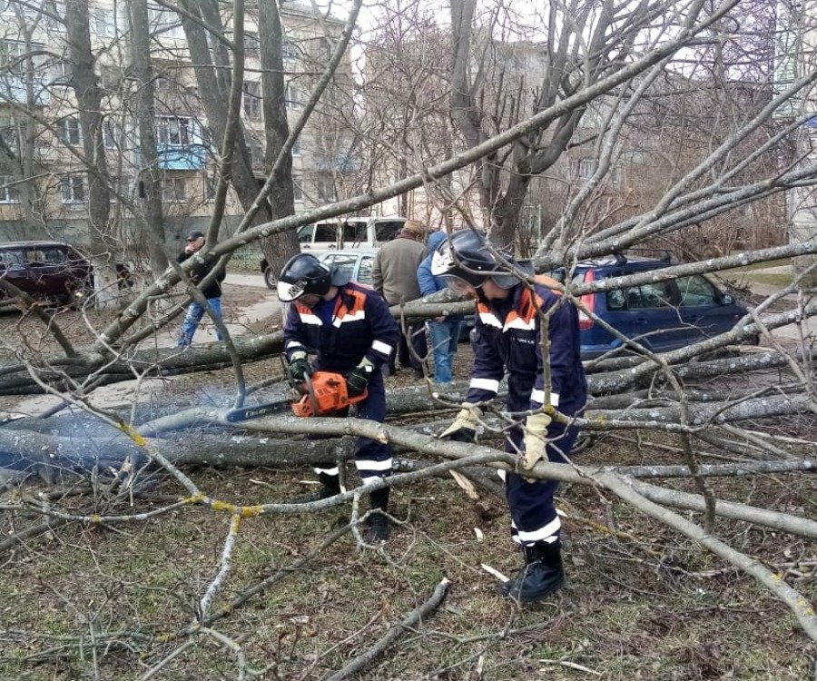 С помощью механизированного инструмента спасатели произвели распиловку дерева. К счастью, серьезных повреждений автомобили не получили.