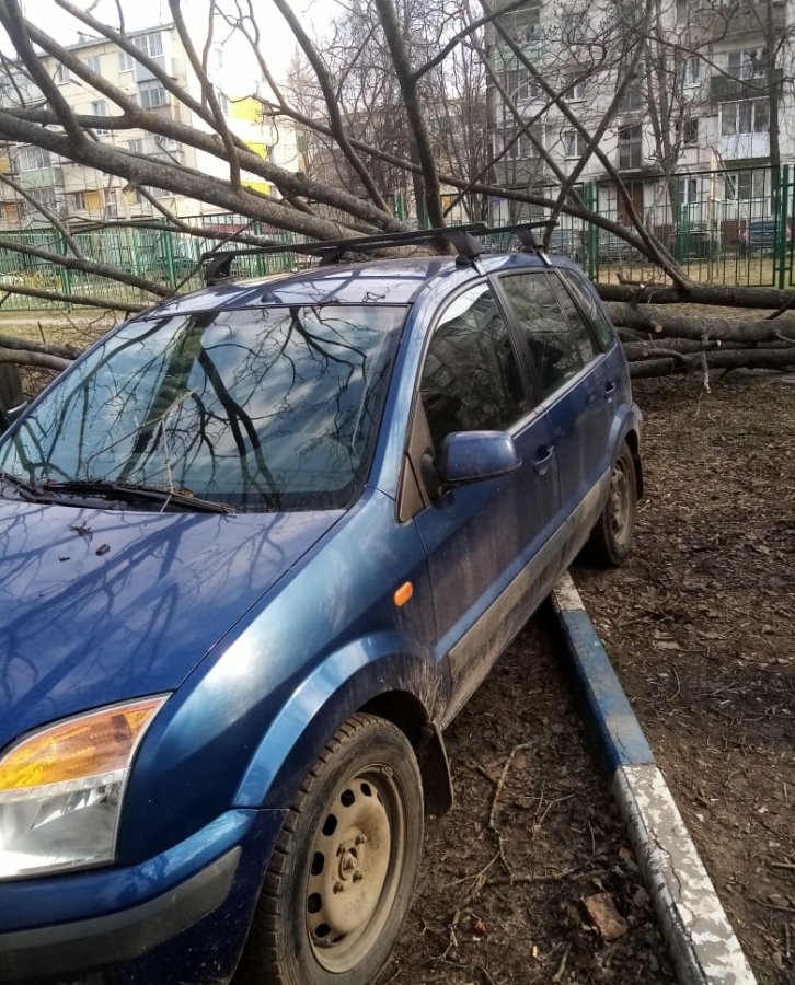 Ветреная неделя: в Кашире-2 на припаркованные автомобили рухнуло дерево