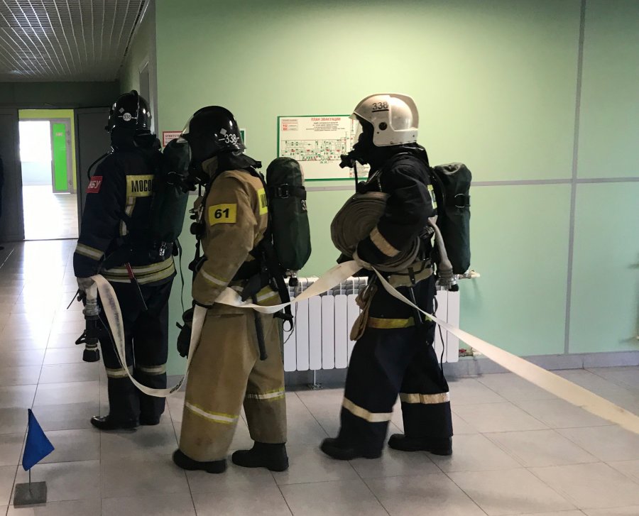 Алексей Кондратьев уточнил, что, согласно тактическому замыслу тренировки, на первом этаже сервисного блока административного здания, в результате короткого замыкания электропроводки, в помещении раздевалки, возник пожар.