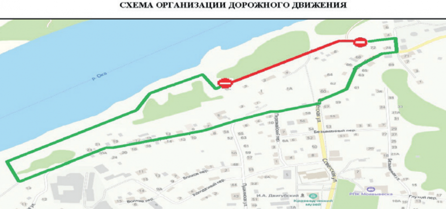 Согласно приложенной схеме, движение закрыто от ВЗУ до водно-спасательной станции. Альтернативный объезд возможен по улицам Первомайской и Фабричной.