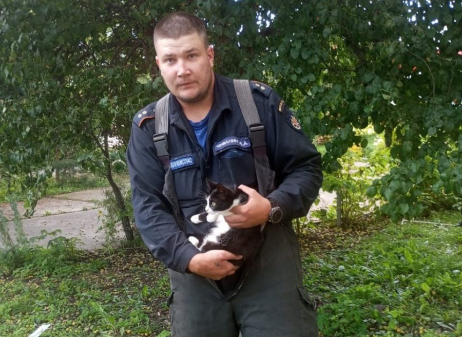 Каширские спасатели проявили неравнодушие, вызволив из беды застрявшего на дереве кота