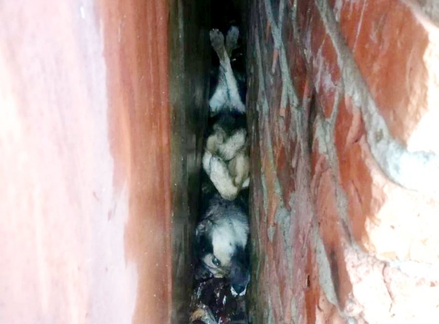 Каширские спасатели пришли на помощь застрявшей между гаражей собаке