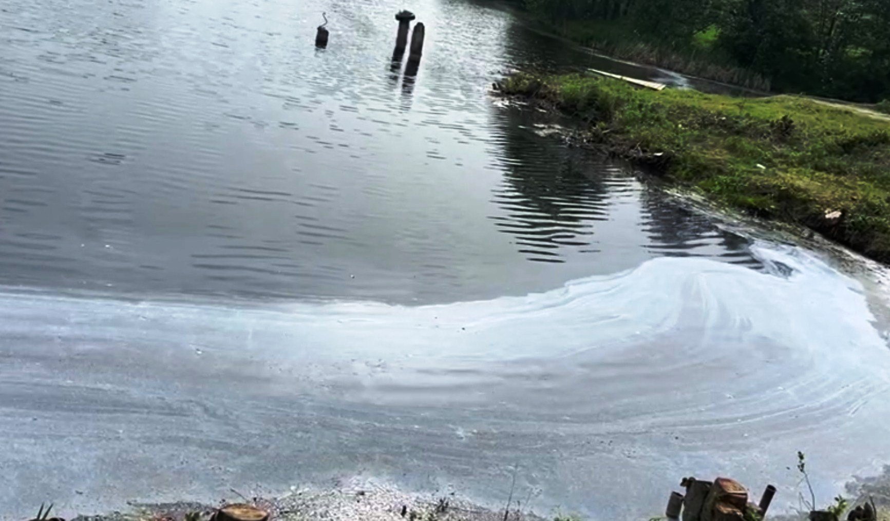Очевидцы поделились в соцсетях состоянием пруда в деревне Пятница. Известный в народе как «гусятник» водоем покрылся по берегу неизвестной пенной с маслянистым оттенком. «То, что попилили деревья – очень хорошо, просторно, красиво. А вот то, что пена по пруду белая с бензиновым акцентом – это что-то странное, такое вижу впервые» – поделилась автор видео. Рядом с прудом нет каких-либо крупных предприятия или производств, поэтому происхождение посторонних примесей в воде может быть связано и с отдельным несанкционированным сбросом. Как бы то ни было, на пользу флоре и фауне водоема подобные сброса не пойдут, а для их ликвидации необходимо вмешательство соответствующих служб. Видео: соцсети
