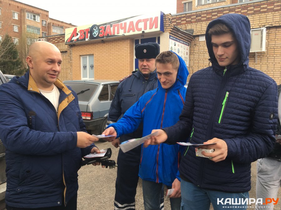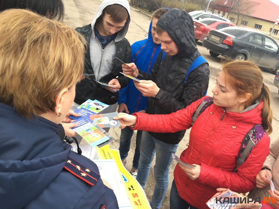 В завершение мероприятия студенты совместно с сотрудниками госавтоинспекции провели рейд на дорогах Каширы - раздавали водителям и пешеходам призывающие к безопасности дорожного движения листовки и брошюры, демонстрировали тематические плакаты с призывами соблюдать ПДД.