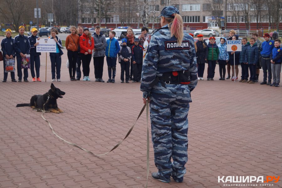 Перед стартом участники слета выстроились на площади перед дворцом спорта, чтобы еще раз ознакомится с условиями конкурсов и поприветствовать членов жюри: педагогов дополнительного образования, специалистов управления образования администрации городского округа Кашира, сотрудников ГИБДД. Перед стартом школьникам было представлено выступление сотрудника-кинолога ОМВД России по городскому округу Кашира.