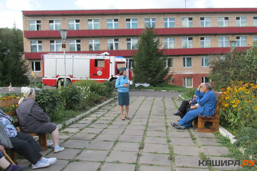 Вскоре на территорию санатория, расположенного на ул. Центролит, прибыл пожарный расчет ПЧ №219. Пока спасатели занимались непосредственными обязанностями по тушению условного пожара, представители Каширского отдела надзорной деятельности вели беседу с персоналом.