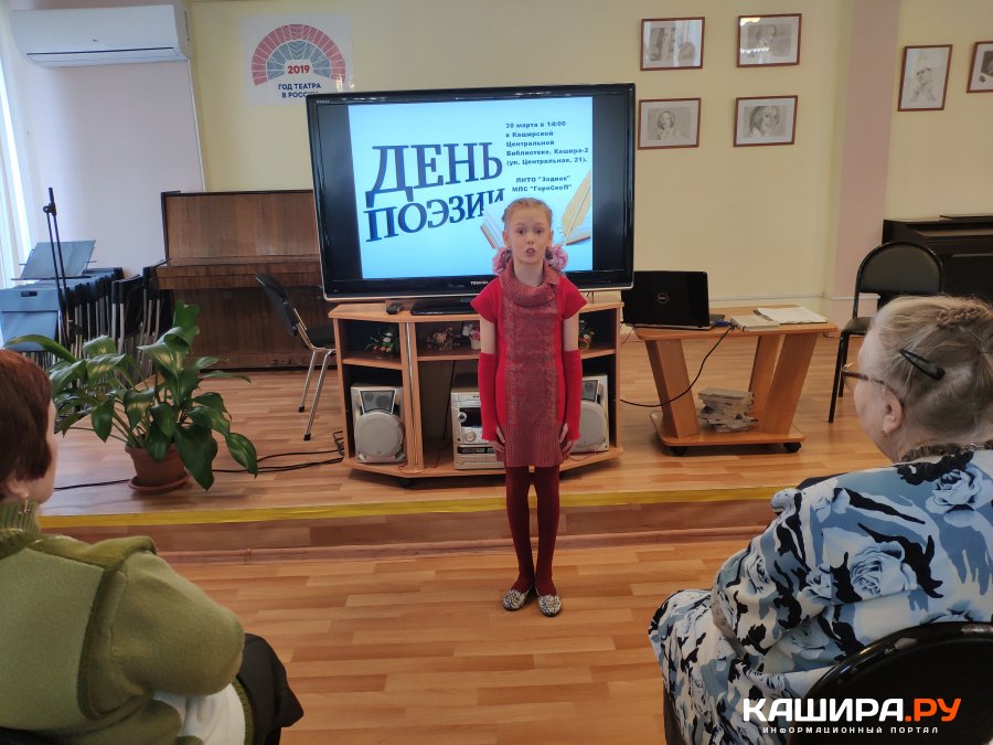В городском округе Кашира прошли мероприятия, посвящённые Дню поэзии. В Центральной библиотеке на улице Центральная в Кашире 2 состоялся День поэзии, организованный руководителем литературного объединения «Зодиак» Андреем Александровичем Терновым. Подготовленная А.А. Терновым презентация о зарождении и развитии литературного движения в Кашире помогла слушателям познакомиться с А.А. Болодуриным, который стал редактором редколлегии «Нашей Газеты» ( "Каширские известия") в 1924 году, а в 1928 году стал руководителем первого литературного объединения Каширы, собравший в один коллектив всех пишущих и сочиняющих творческих людей. Присутствующие узнали и о последователях Александра Алексеевича. Интересно было узнать о бывшем руководителе ЛИТО, замечательной поэтессе А.Н. Гришиной, о поэте Г. Кольцове, чьим именем назван литературный конкурс «Звёздное перо», о А. Прядкине и др. поэтах. А. Тернов отметил, что все поэты разные по стилю написания своих произведений, разные по миропониманию, но каждый заслуживает внимания, потому что они владеют словом и потому, что они профессионалы своего дела. На встрече прозвучали стихи в исполнении авторов: Г.П. Аббакумовой, Т.Я. Орловой, Е. Шибаршина, В. С. Бусова, В. И. Филиппова и других. Андрей Александрович Тернов так же декламировал свои произведения и создал радостную, уютную обстановку в зале библиотеки, организовав коллективное исполнение песен «Надежда», «Ты ждёшь, Лизавета». Песенный марафон приняла Галина Петровна Аббакумова. Она исполнила свои задушевные песни. Молодое поколение вливается в коллектив любителей поэзии. На встрече порадовала чтением стихотворений ученица школы № 7 Шагова Надежда. Девочка прочитала стихотворение Татьяны Касатиной, каширянки, «Кашира – ты цветущий город» и П. Петерсона «Сиротка». Вечер получился насыщенным по содержанию, интересным. Энергии, неутомимости, оптимизму Андрея Александровича Тернова приходится каждый раз удивляться! Организатор вечера так вёл встречу, что каждому хотелось выступить, что-то рассказать, все остались довольны. Очень важно, что люди умеют слушать и слышать друг друга. Поэты рассказывали о своём жизненном опыте, о своих переживаниях и радостях в стихах, и это находило эмоциональный отклик у слушателей. К поэзии невозможно оставаться равнодушным, с ней надо обязательно знакомиться, чтобы обогатить свою душу, наполнить свой внутренний мир хорошим содержанием, чтобы очиститься от словесной бытовой грязи. Каширяне, приходите на такие встречи, наслаждайтесь общением с интересными людьми, наполняйте жизнь событиями, чтобы она стала интересной!