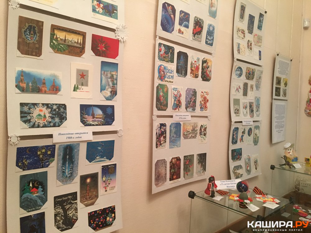 В Каширском краеведческом музее состоялось открытие сразу двух традиционных тематических выставок «Рождественская открытка» и «Новогодняя игрушка». Участники мероприятия послушали рассказ о том, как на Руси появились традиции отмечать Новый год и украшать рождественское дерево, какими были самые первые новогодние игрушки, и как история нашей страны отразилась в сюжетах новогодних открыток и форме ёлочных украшений. Так, например, в шестидесятые годы после полёта в космос Ю.Гагарина на открытках были популярны зимние пейзажи и космическая тематика: Дед Мороз ехал не на традиционной русской тройке, а летел на космической ракете.