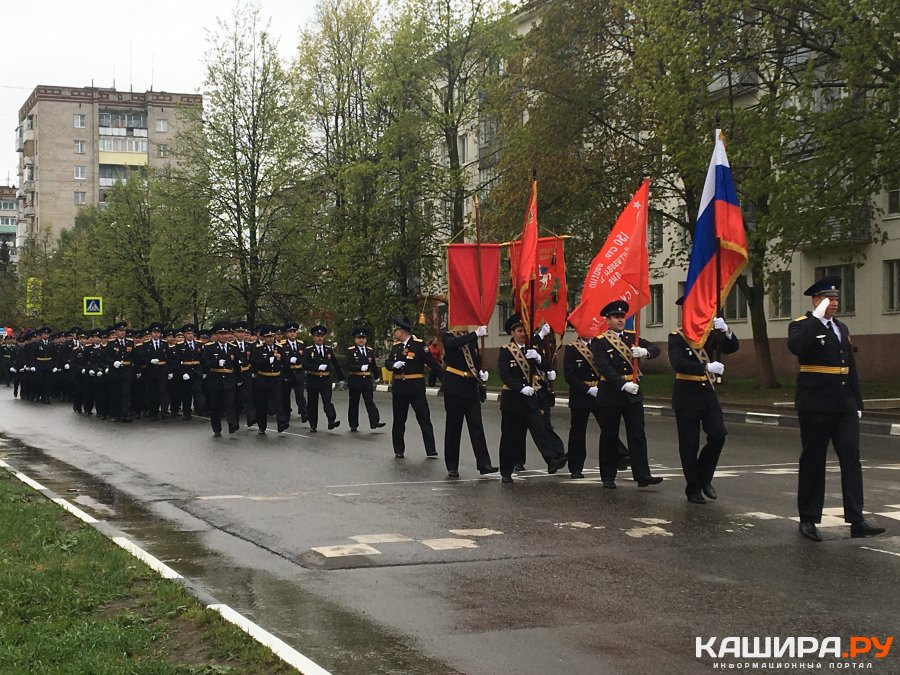 Колонна построилась на улице Вахрушева в 9 утра, прошла по улицам Садовой и Металлистов, и остановилась на Аллее Славы. Проходя по Садовой, участники парада поприветствовала ветеранов и детей ВОВ, которые разместились у СК "Кашира". Шествие сопровождалось рассказами о подвигах каширян и записью речи Левитана об окончании ВОВ.