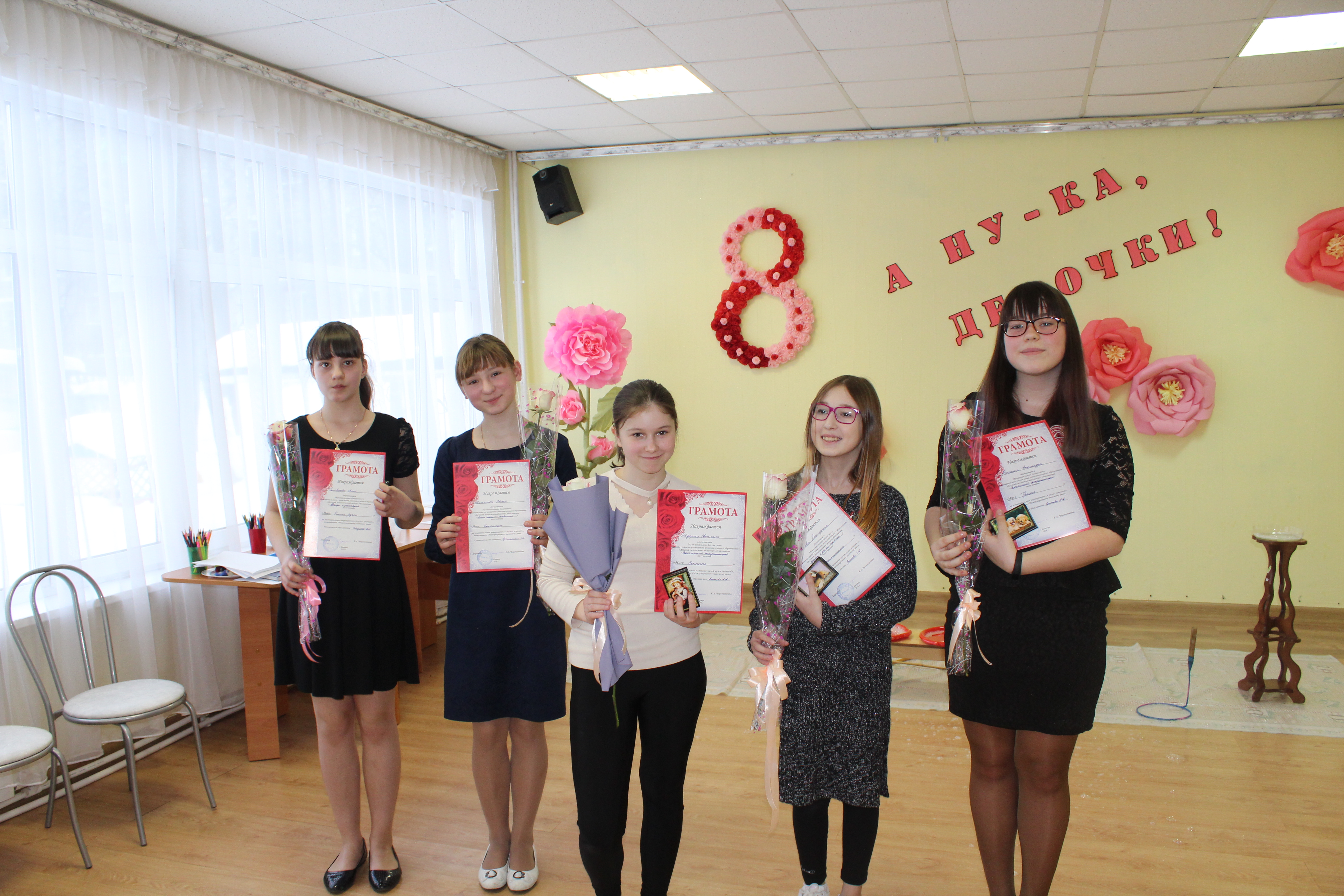Накануне праздника в Детском экологическом центре состоялся конкурс «А ну-ка, девочки!», посвящённый международному женскому Дню 8 Марта. В мероприятии приняли участие воспитанницы Центра: Головачева Анна, Шильникова Мария, Ковалева Екатерина, Финагина Александра, Гайдаржи Светлана. Девочки приняли участие в аукционе цветов, интеллектуальном конкурсе, исполняли песни, составляли поздравительную открытку для мам, соревновались в парикмахерском искусстве, в умении красиво повязывать шарфик. Так же в перерывах между конкурсами, воспитанники Центра танцевали, пели, а в завершении программы удивили зрителей, показав шоу мыльных пузырей. Все участницы были награждены цветами и подарками. Мероприятие прошло ярко, весело в праздничной весенней атмосфере!