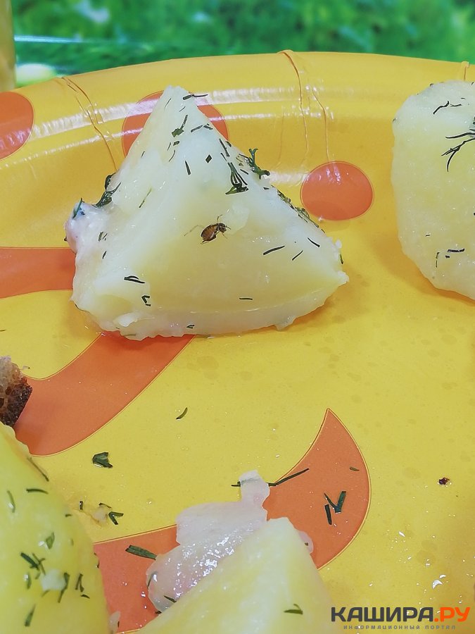 К сообщению едва не пострадавшая от некачественной пищи девушка приложила весьма красноречивое фото. Молодое еще (по всей видимости) насекомое «украшало» своей тушкой ломтик отварного картофеля с укропом, явно не пробуждая признаков аппетита.