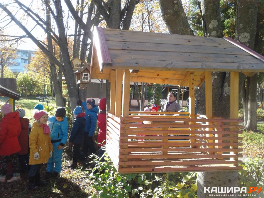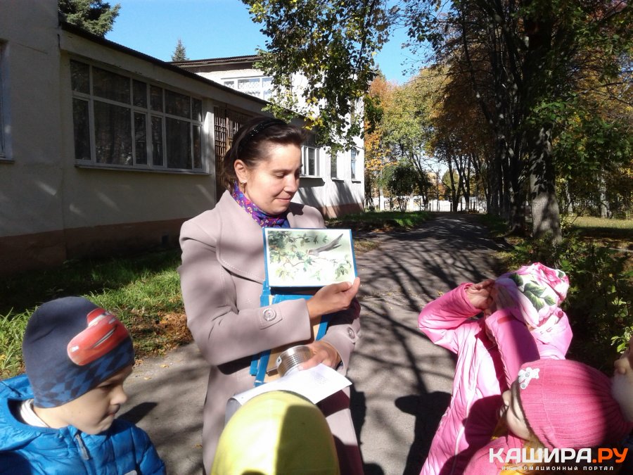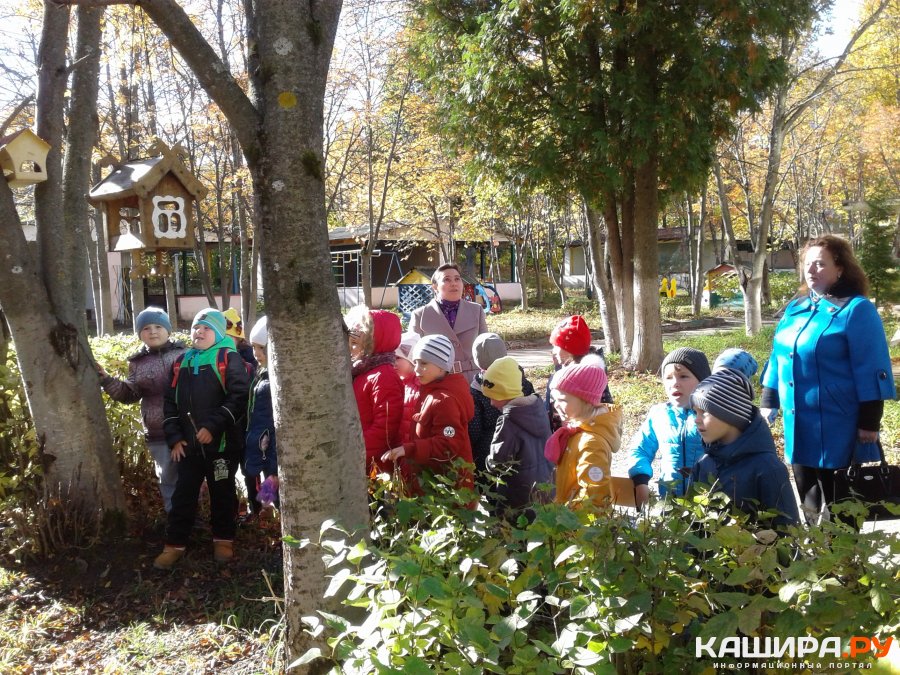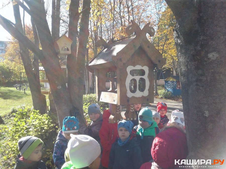 Станция «Птичья столовая» тоже заинтересовала детей. Во-первых, здесь размещены красивые кормушки. Во-вторых, они расположены на рябине, на дереве, которое так интересно для птиц. Дети заметили в домике красивую притаившуюся кошку. Педагог обратила внимание детей, что не зря она здесь ожидает, предложила детям догадаться. Конечно, дети поняли, что кошку заинтересовали многочисленные птицы, слетевшиеся на рябину. Ольга Михайловна прочитала детям загадки о птицах, ребята смогли найти отгадки на картинках. Взрослых удивило то, что дети сами предложили тихо постоять и послушать красивые голоса птиц. Кто кого перепоёт? Видно птахи тоже радовались и гостям, и осеннему солнышку.