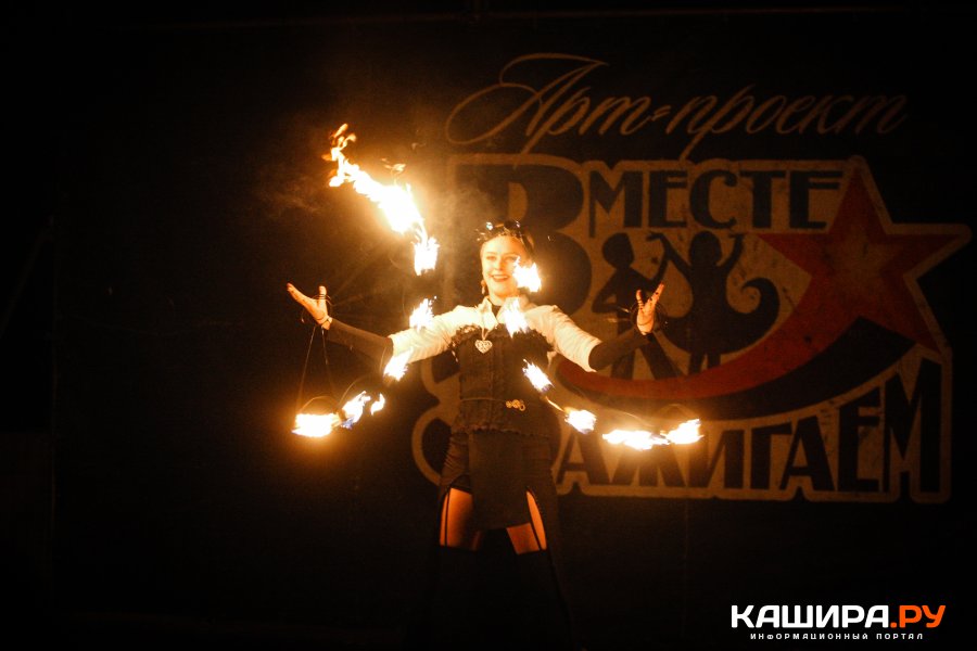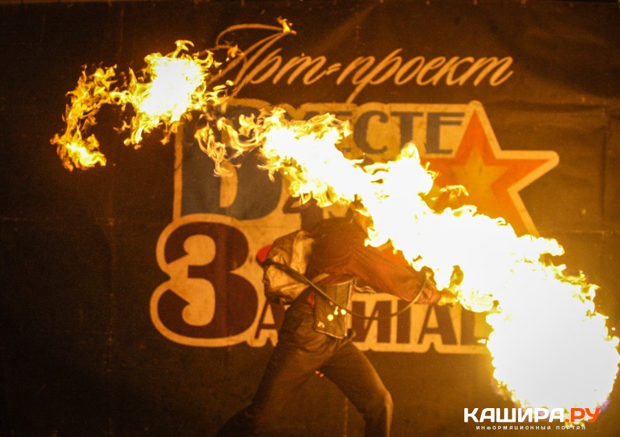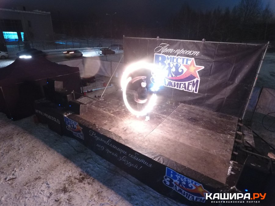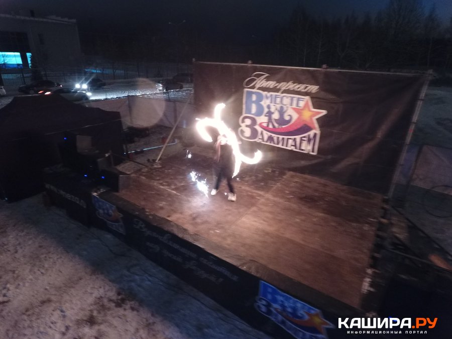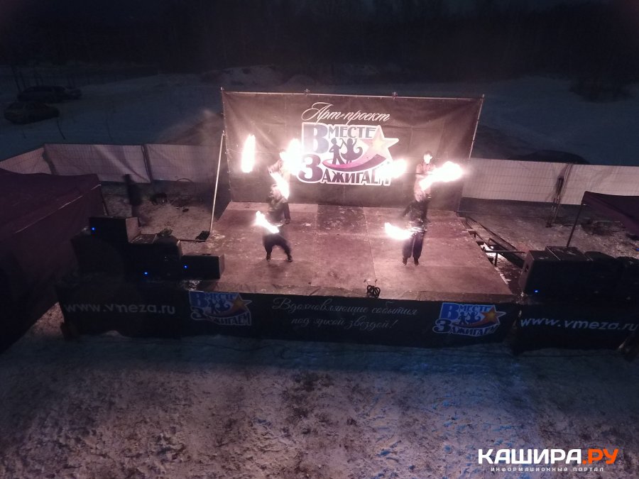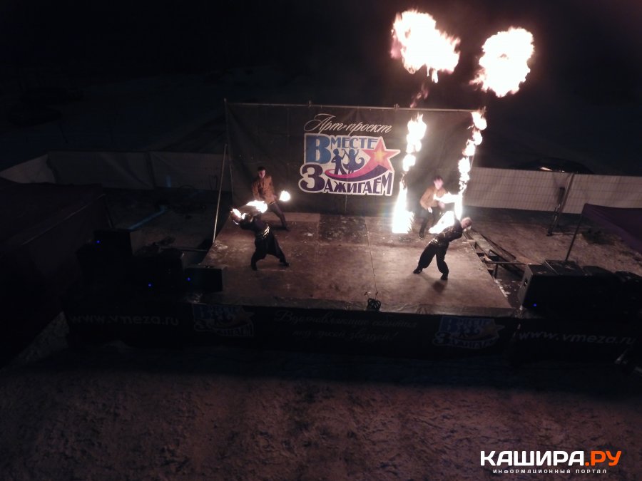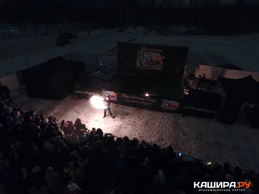 Ну а когда уже немного подмерзшие каширяне готовились к финальному номеру, организаторы согрели их по-настоящему огнедышащим шоу.