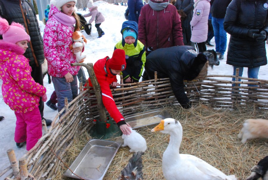 Детворе было интересно познакомиться с совой, гусем, миниатюрными крольчатами, козочками, которых можно было не только погладить, но и покормить морковкой, яблоком. Как и в прошлые годы самая большая очередь из детей и родителей образовалась у пары ездовых собак, запряженных в сани, на которых желающих прокатиться было немало. После чего мальчишки и девчонки спешили оседлать маленького пони. Видя раскрасневшиеся и улыбающиеся лица детей и взрослых, можно с уверенностью сказать, что праздник им пришелся по душе.