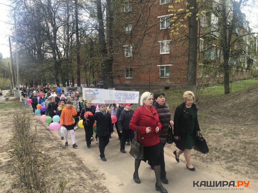 Праздничное мероприятие продолжилось незабываемым шествием, в котором приняли участие учащиеся, родители, педагоги и, конечно, гости. Празднично украшенная шарами, цветами, плакатами колонна проследовала от школы к площади у АТС в Кашире-2. Во время движения колонны классы один за другим скандировали речёвки, прославляющие человека труда. В течение часа на сцене выступали таланты школы № 4, исполняя народные и современные танцы, сольные вокальные номера, а финальный флеш-моб поддержали все участники праздника.