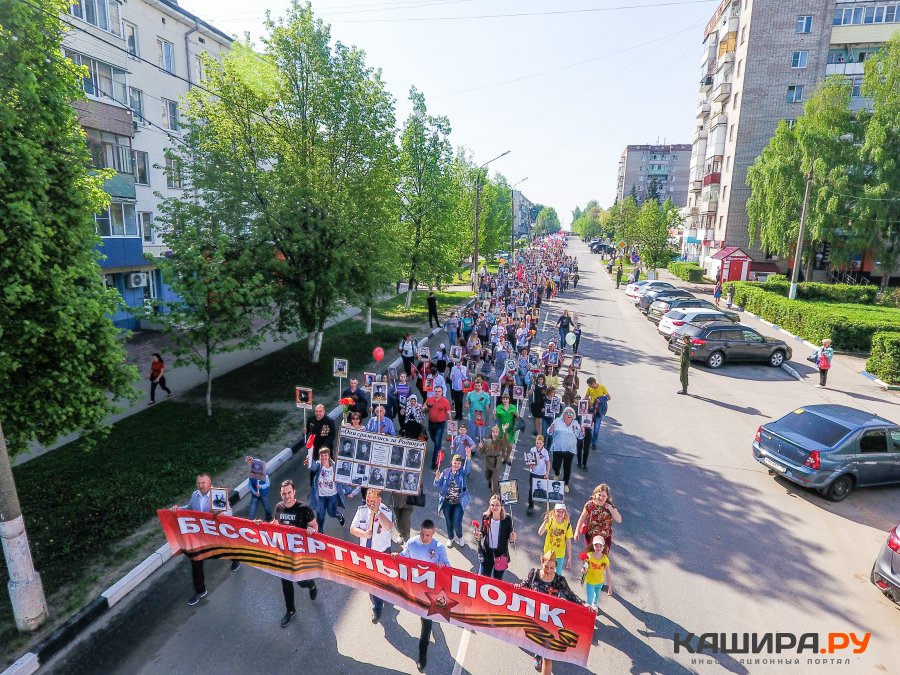 Уже с восьми утра на улице Вахрушева в Кашире-2 начали выстраиваться колонны «Бессмертного полка». По сложившейся традиции каширяне несли с собой портреты своих родных и близких, участвовавших в Великой Отечественной войне.