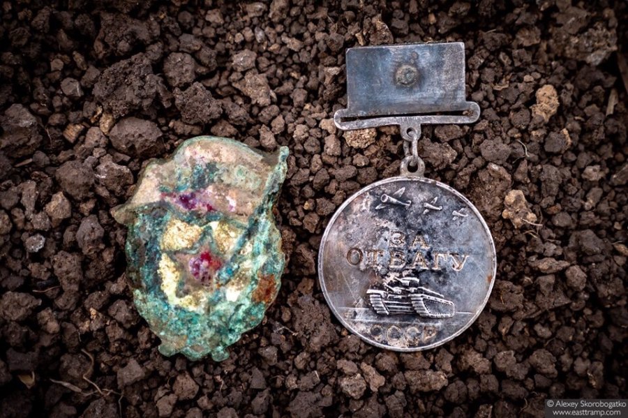 Уточняется, что на месте найдены награды погибшего бойца: медаль «За Отвагу» и знак «Гвардия».