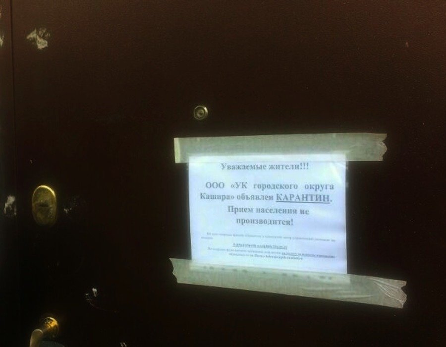 Неблагоприятная эпидемиологическая ситуация по распространению COVID-19 вынудила уйти на карантин и приостановить очный прием граждан управляющую компанию ООО «УК городского округа Кашира». Соответствующее объявление появилось при входе в офис компании. Известно, что заявки в УК теперь принимаются только по телефону (многоканальный номер 849669-9-40-00).