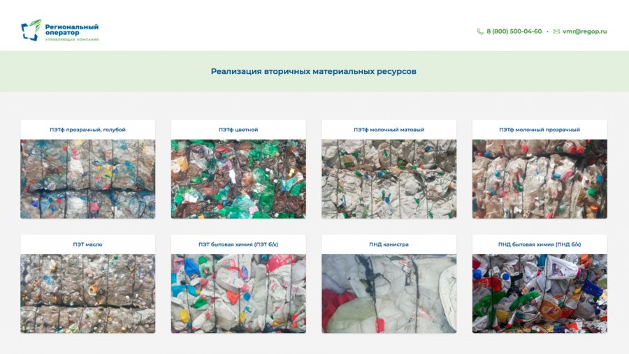 Собственный онлайн-маркет вторсырья запустил региональный оператор компании «РТ-Инвест». Площадка работает по принципу интернет-магазина, где представлен широкий ассортимент вторичных материальных ресурсов. На онлайн-витрине – 10 различных типов полимеров, 3 вида черных металлов, 3 вида цветных, картон, бумага и стеклобой. Как сообщили в компании, отсортированные на КПО «Дон» отходы компания «РТ-Инвест» направляет более 30 перерабатывающими компаниями. Сеть переработчиков охватывает 13 регионов — отходы везут в Нижний Новгород, Санкт-Петербург, Владимир, Рязань, Воронеж и другие города.