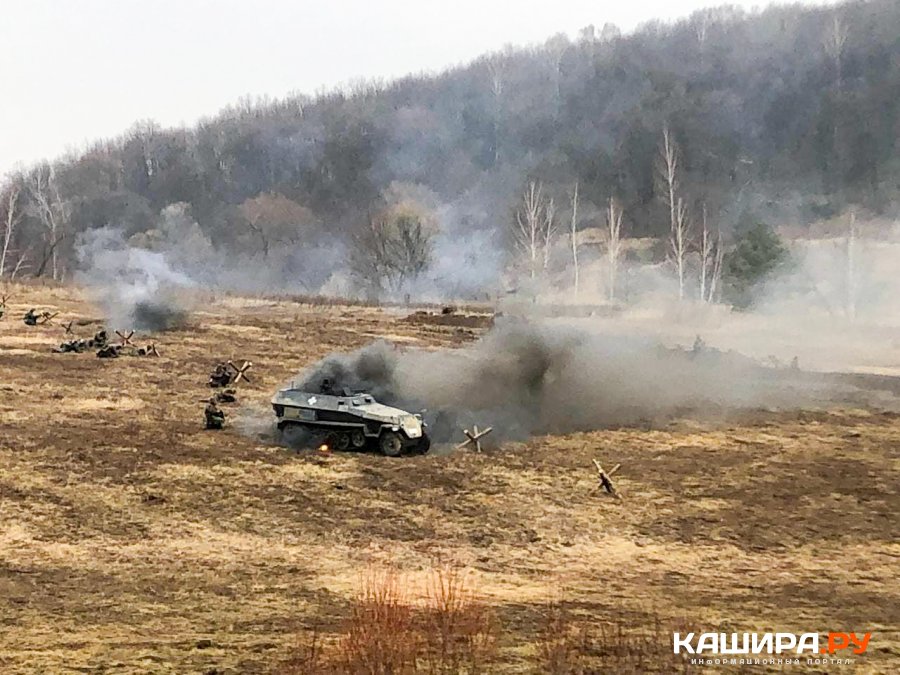Реконструкцию предварял митинг у обелиска, где захоронено почти три сотни бойцов, погибших при обороне Каширы.