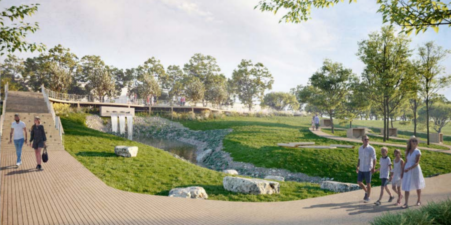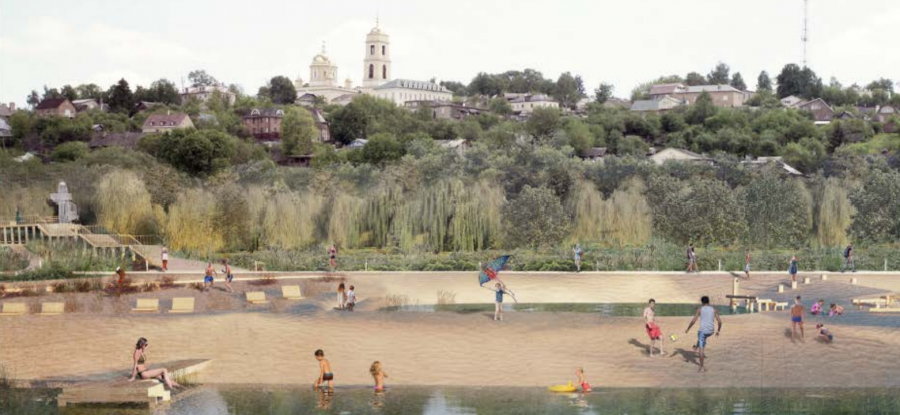 Для отдыха у воды проектом предлагается городской пляж с необходимой инфраструктурой. Посмотреть на город и его берег с воды становится возможным благодаря лодочной станции. Прогулочный маршрут «Девять ключей» позволяет попробовать чистую родниковую воду на вкус, а «Место у водопада» забыть о городской суете и побыть наедине с самим собой.