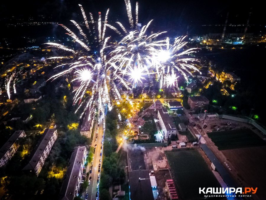 Становятся известны первые подробности предстоящего празднования 666-летия Каширы Завершением мероприятий в честь Дня города в Кашире 27 августа станет фейерверк, который по задумке организаторов продлится не менее десяти минут. Известно, что затраты на красочное шоу составят около 1 миллиона рублей. В небо выпустят почти 50 различных видов пиротехнических зарядов. А сам салют пройдет на стадионе «Энергетик».