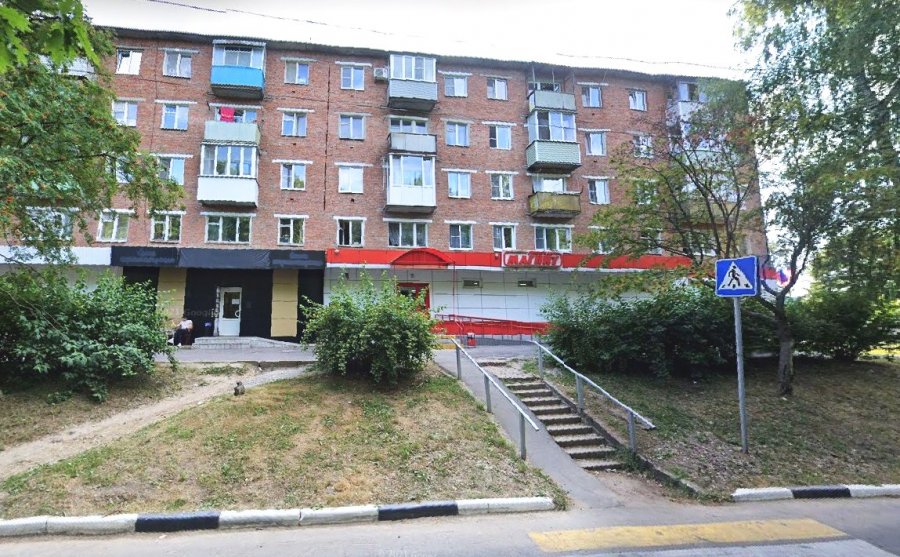 Сегодня на первом этаже дома по-прежнему расположены торговые объекты и кафетерий. Протяженная лестница, изображенная на архивном проекте, отсутствует. Но совсем недавно в рамках реконструкции тротуара возле дома обустроили новый пандус.