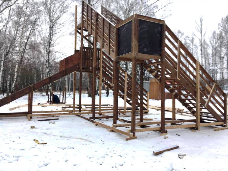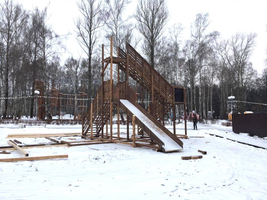 В городском парке Каширы завершается установка двухскатной деревянной горки. Она будет располагаться на площадке за пунктом проката. Как сообщили в администрации парка, для комфортного катания нужно будет дождаться нормального снежного покрова и прохождения необходимой аттестации.