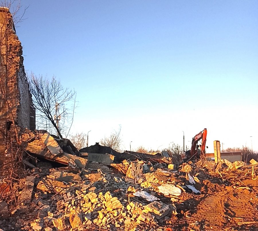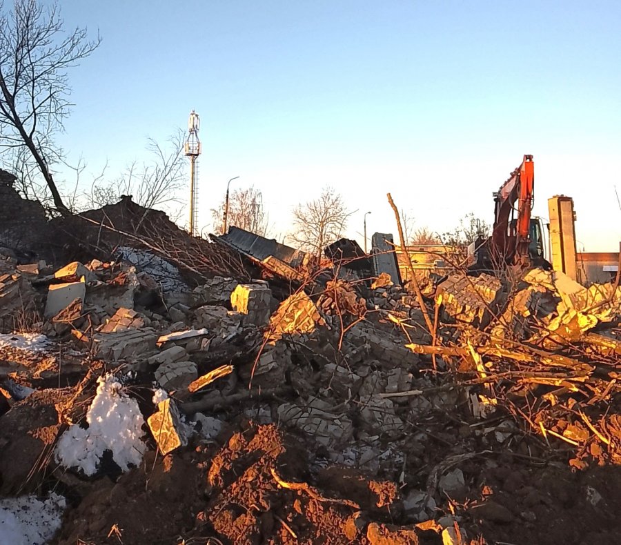 Заброшенное здание сносят в Ожерелье на улице Строительной