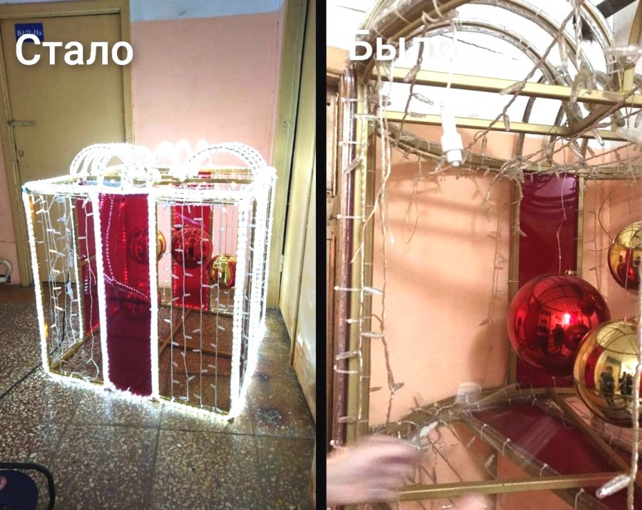 Сообщается, что силами УК «Жилресурс» была оказана помощь в ремонте и восстановлении новогодних фигур.