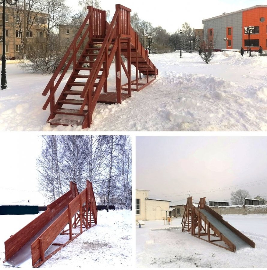 Тем временем, в округе продолжают устанавливать горки. Помимо тюбингового аттракциона в парке, горки уже появились на площади у АТС в Кашире-2, на стадионе «Спартак» в Кашире-1, в Ожерелье, деревне Барабаново и других населенных пунктах.
