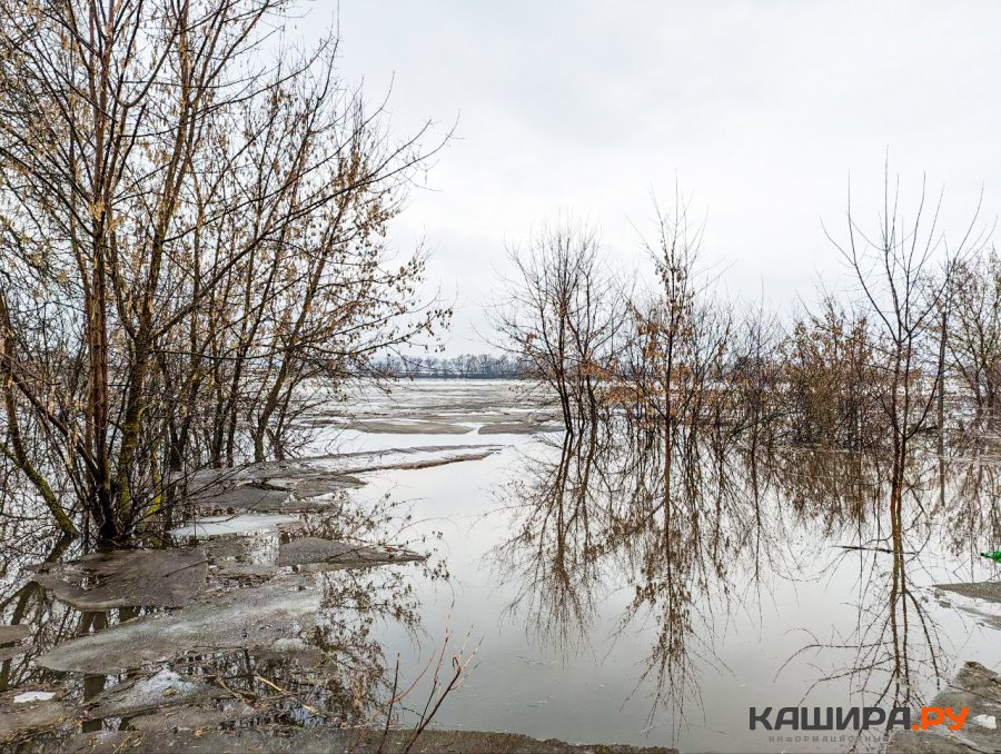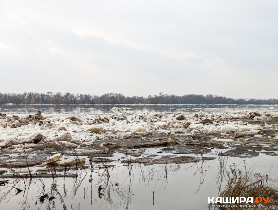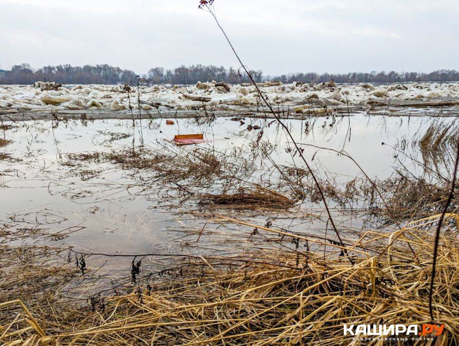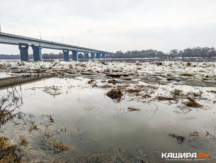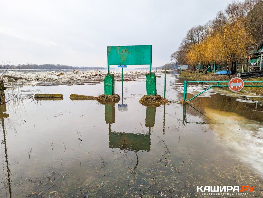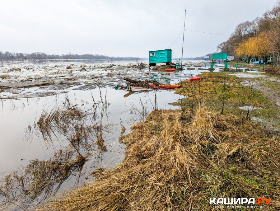 Как видно, лед на реке вскрылся и поплыл вниз по течению. При этом вследствие таяния льда во многих местах наблюдается значительный подъем воды. По информации синоптиков, за прошедшие сутки уровень воды в Оке в Кашире повысился еще на 12 см. В некоторых местах вода достаточно сильно вышла из берегов и уже успела подтопить некоторые постройки. Кстати, под водой сейчас находится и часть конструкций строящейся набережной в Кашире. А вот у самой Каширы, где стоит большой ледяной пласт, ледоход пока не начался. Впрочем, судя по теплой и влажной погоде, это наверняка дело ближайшего времени.