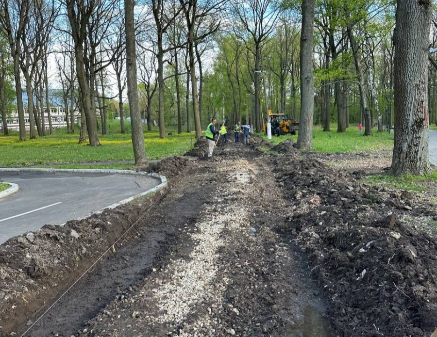 В Ожерельевском парке устанавливают новую входную группу и обустраивают тротуар