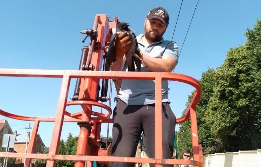 На место прибыла автовышка и стараниями работников одной из служб ворона была вызволена из «заточения» и отпущена на волю.