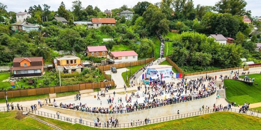 Утром по Советской прошли в парадном шествии трудовые коллективы. Состоялась инаугурация главы округа. Также в центре Каширы-1 работала ярмарка, творческие площадки. А к двум часам дня основная масса людей переместилась на набережную, заполнив практически все прилегающее к смотровой площадке пространство.