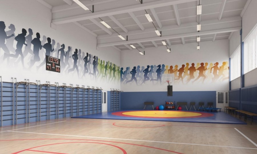 Судя из представленного брендбука, в школе отремонтируют фасад здания, учебные классы, спортивный и актовый залы, столовую.