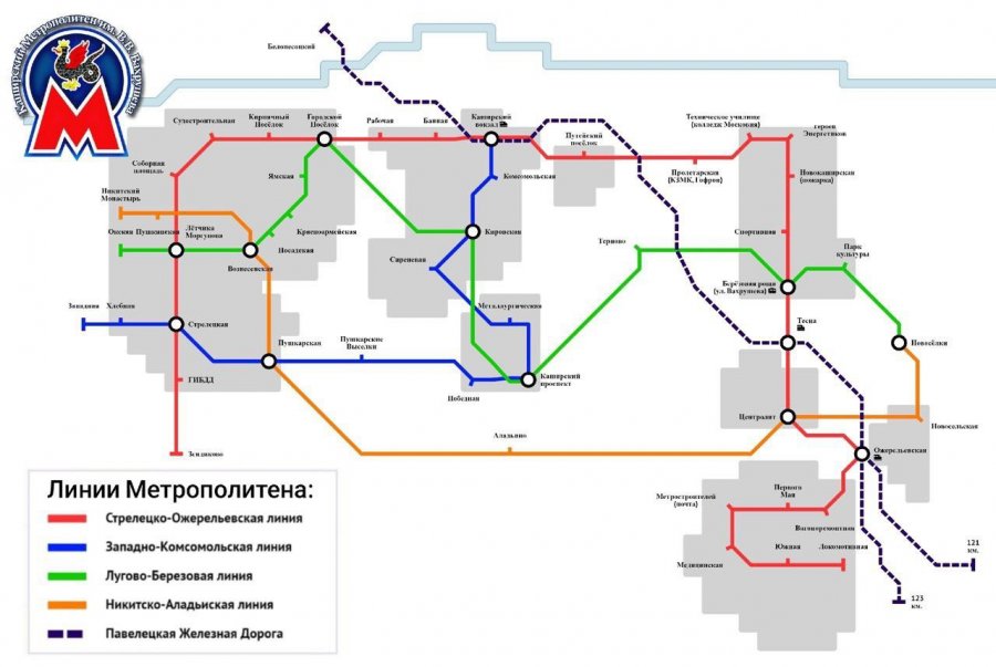 Виртуальная карта с изображением того, как мог бы в теории выглядеть Каширский метрополитен имени В.В. Вахрушева, появилась в сети, и пусть даже на фантастический манер, но привлекла внимание каширян. Первое – это, конечно же, название станций. Никитская, Пролетарская, летчика Моргунова, Терново, Березовая роща, Новоселки, и даже Ожерелье и Кирпичный поселок. Авторы постарались максимально приблизить схему виртуального метрополитена к актуальной карте населенных пунктов городского округа Кашира и даже разделили ее на пять линий.