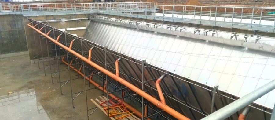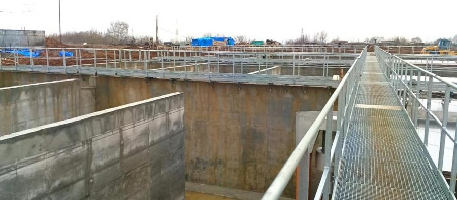 Параллельно ведется установка металлоконструкций и колонн здания доочистки и обеззараживания сточных вод, земляные работы на главной и локальной канализационных насосных станциях.