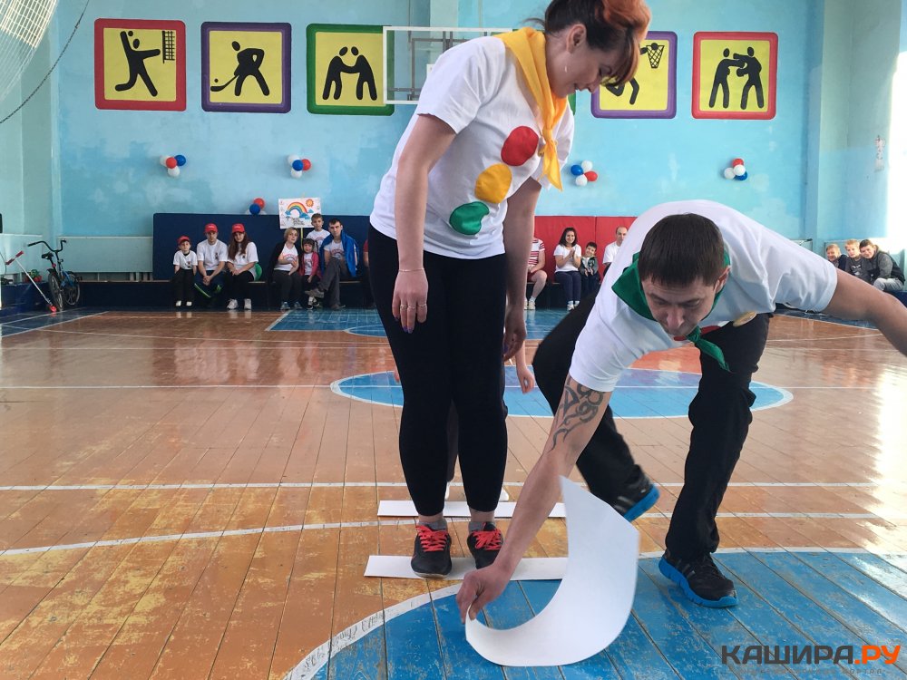 Не менее забавно прошел конкурс «Пешеходный переход». Каждая команда с помощью трех белых широких полосок составляет «зебру», по которой должна добраться до заветного конверта и вернуться таким же образом назад. Ограниченное количество составляющих пешеходного перехода требует от ребенка и родителей двигаться вместе с полоской поочередно. Главное условие не начинать движение, пока предыдущий член семьи не встанет на свою полоску. Соответственно, побеждает команда, первая пришедшая к финишу. Нарушения вроде «широкого шага» учитывались членами жюри, расстояние между полосками не должно превышать расстояния на реальной разметке «пешеходного перехода». Как оказалось, все участники по-разному видят «зебру». В перерывах между конкурсами юных зрителей загадками и играми развлекал Домовенок Кузя.