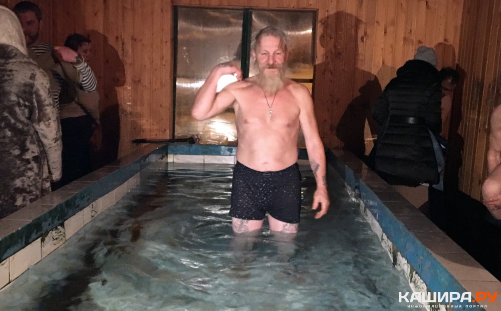 Еще накануне одного из самых главных православных праздников верующие начали набирать святой воды в церквях и источниках, а после окончания торжественной службы отправились в купальни для очищения души и тела. В этом году в Кашире организованы три места для принятия крещенских "ванн", все они патрулируются сотрудниками МЧС и бригадами скорой помощи. Медики напоминают, что для погружения в холодную воду необходимо быть не только сильным духом, но и крепким телом. Полина Шитова несмотря на недомогание не изменяет своей традиции искупаться в праздник Богоявления.